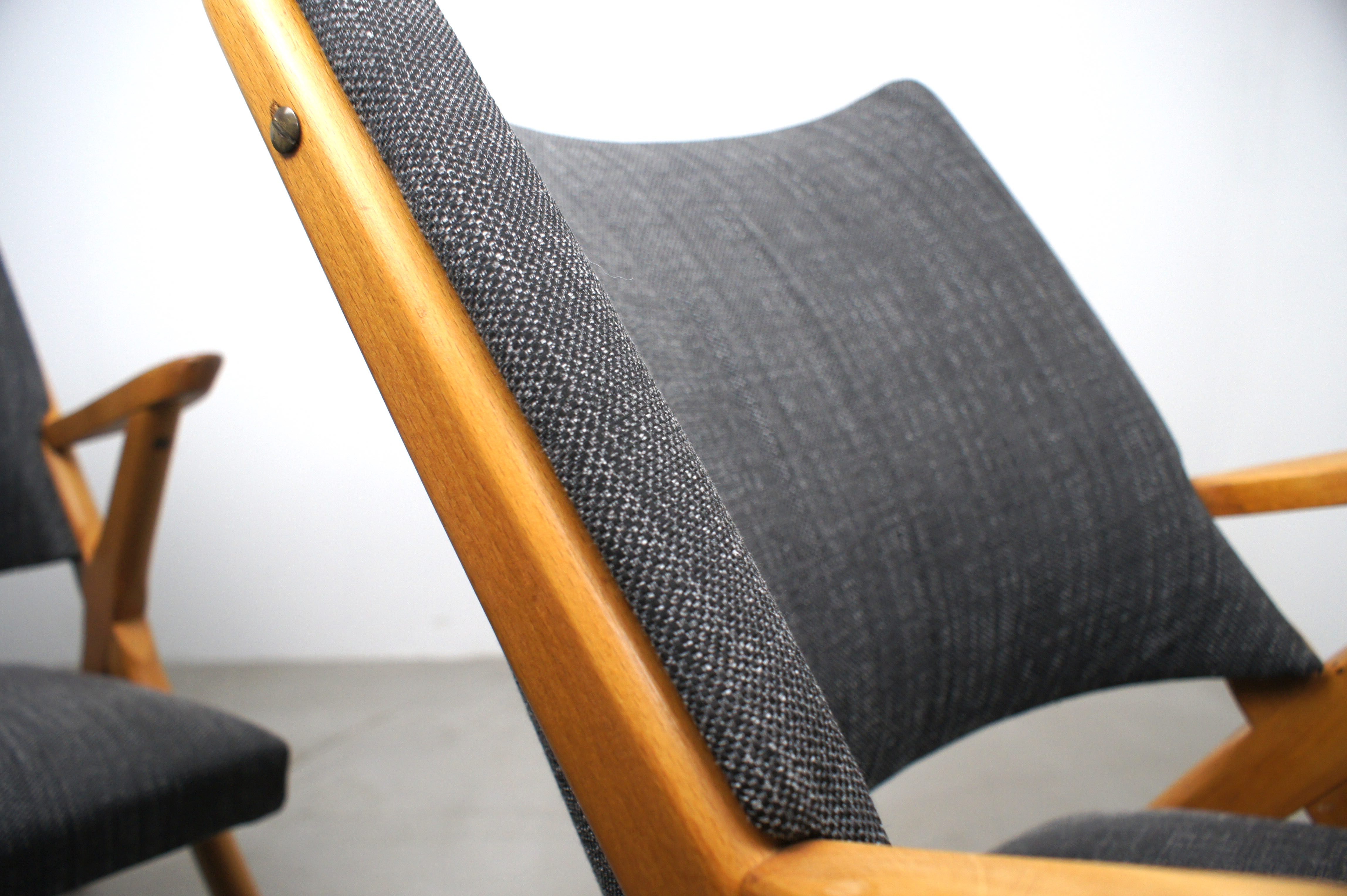 description pair of lounge chair , solid wood frame, brass details, reupholstered